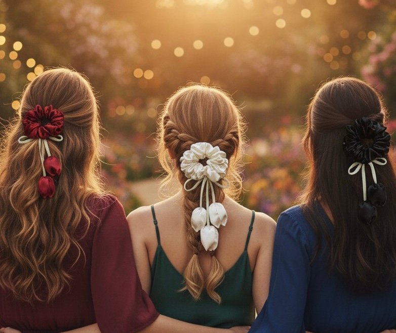 • Material: Scrunchies are made from a wide variety of materials, with satin and silk being popular choices because they are gentler on the hair. Other common fabrics include cotton, velvet, and various patterned textiles.